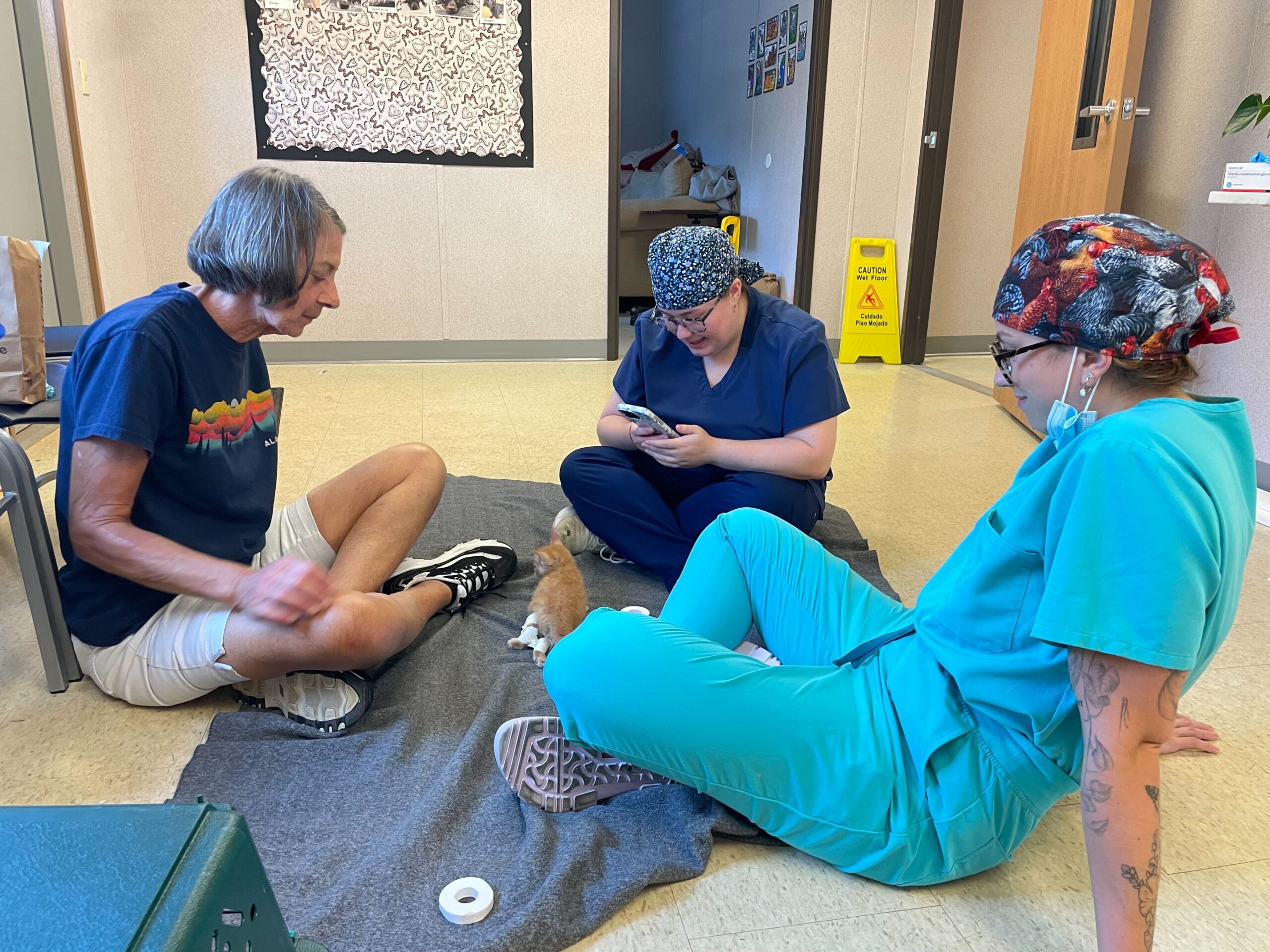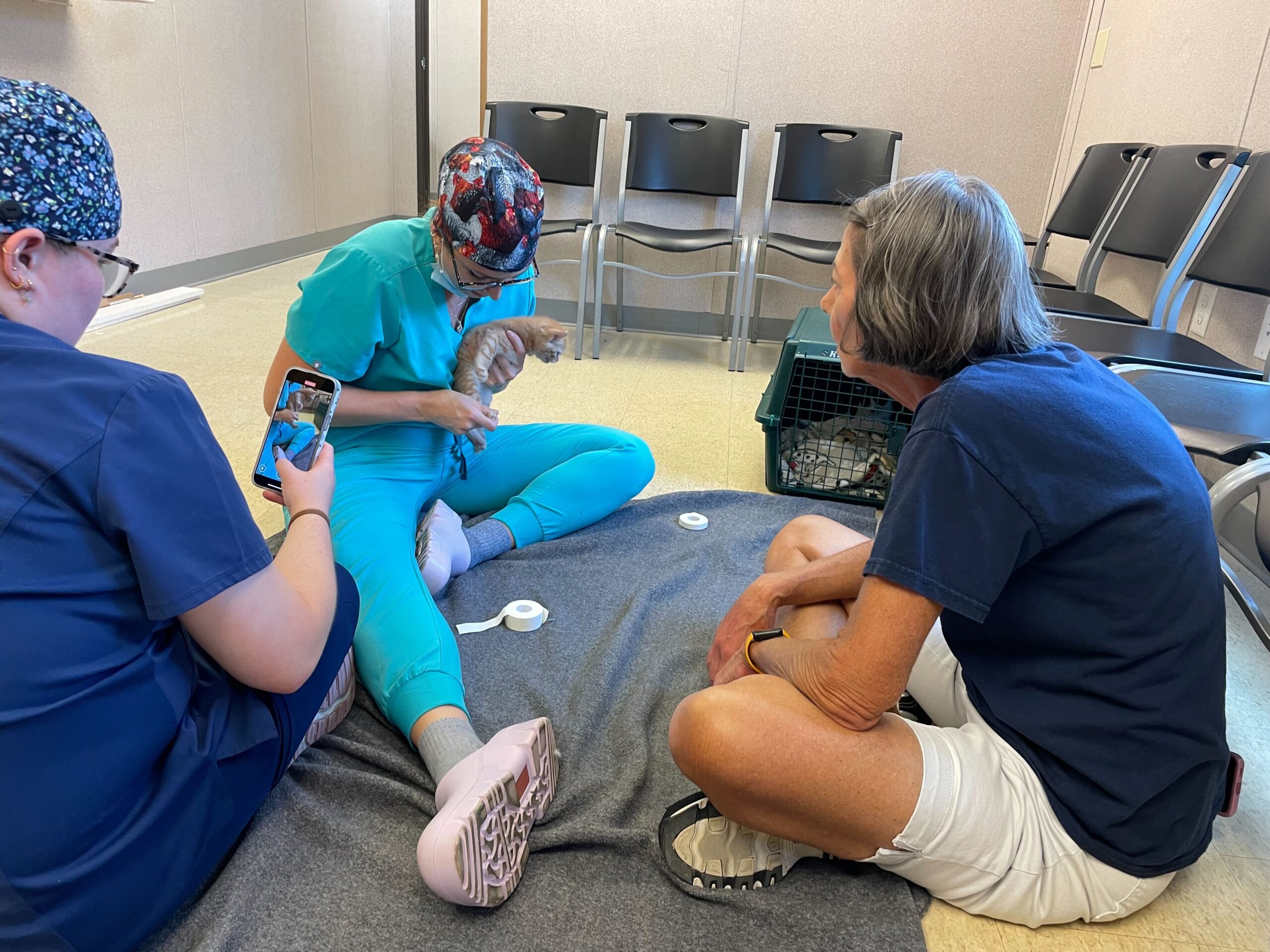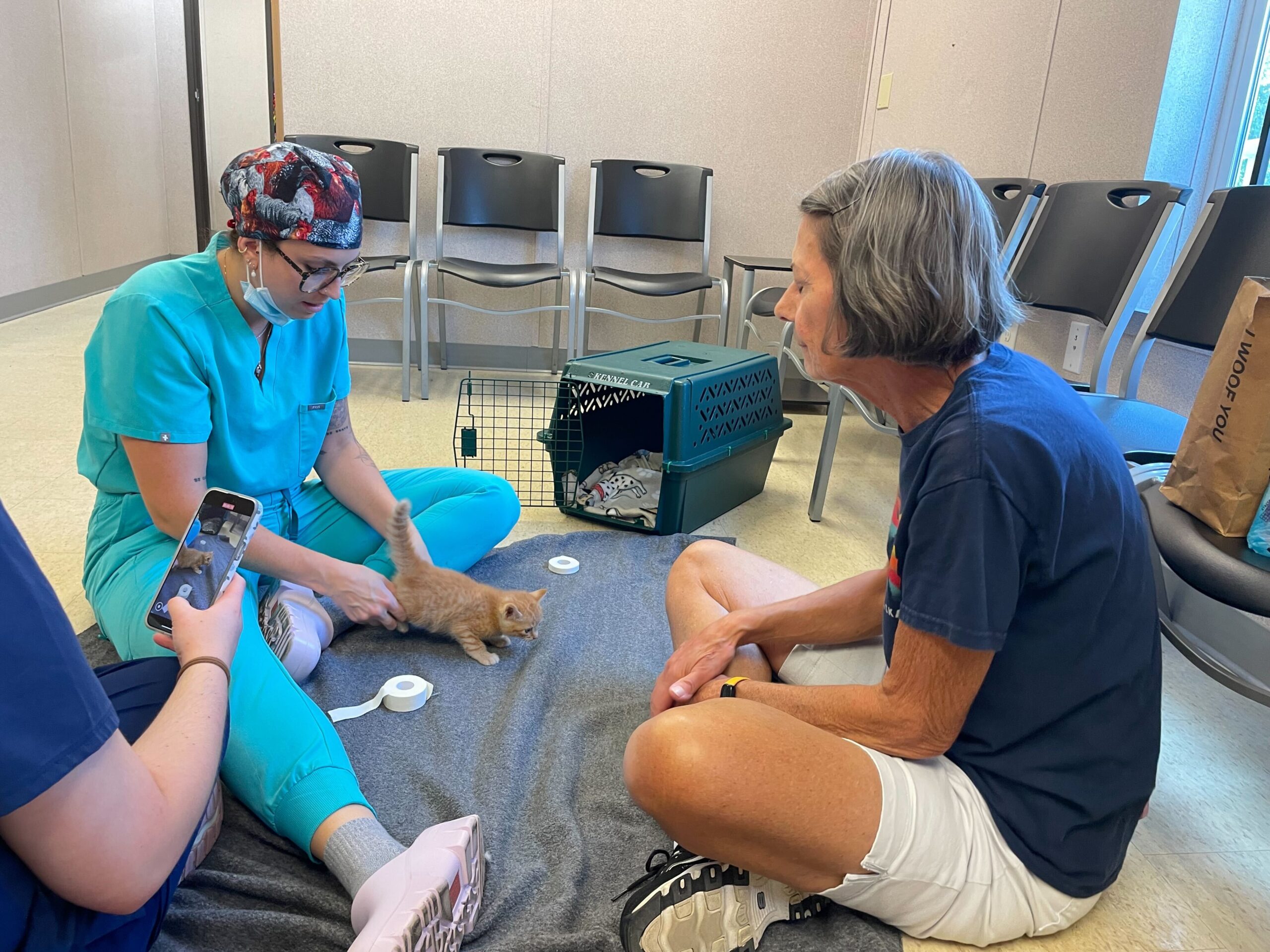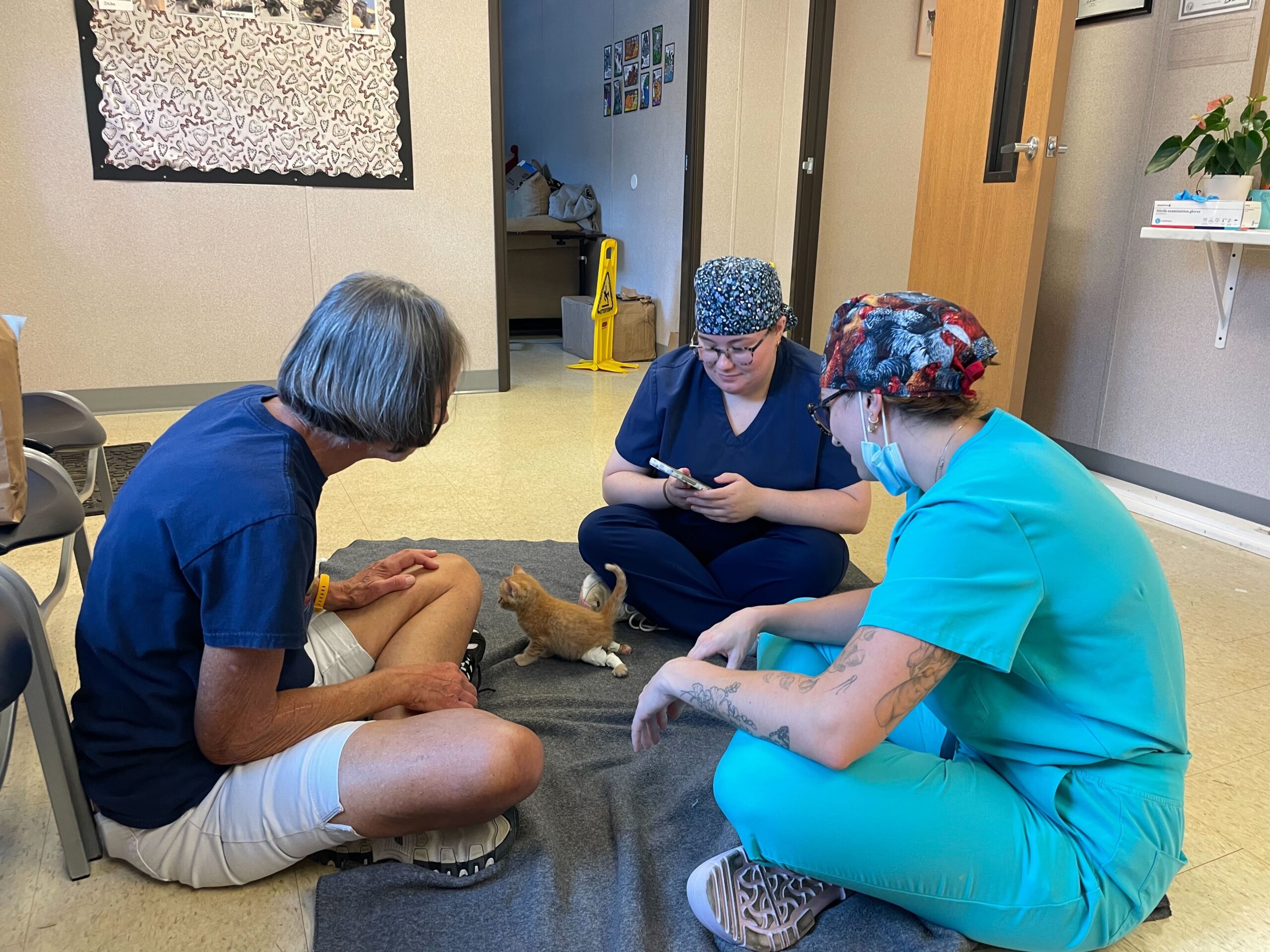 The tiny orange fluffball had something called Swimmer Syndrome, a condition that causes a kitten’s legs to splay out to the sides, making it hard for them to stand or walk. Without help, kittens like Phelps can struggle to grow strong enough to move normally or keep up with their siblings.