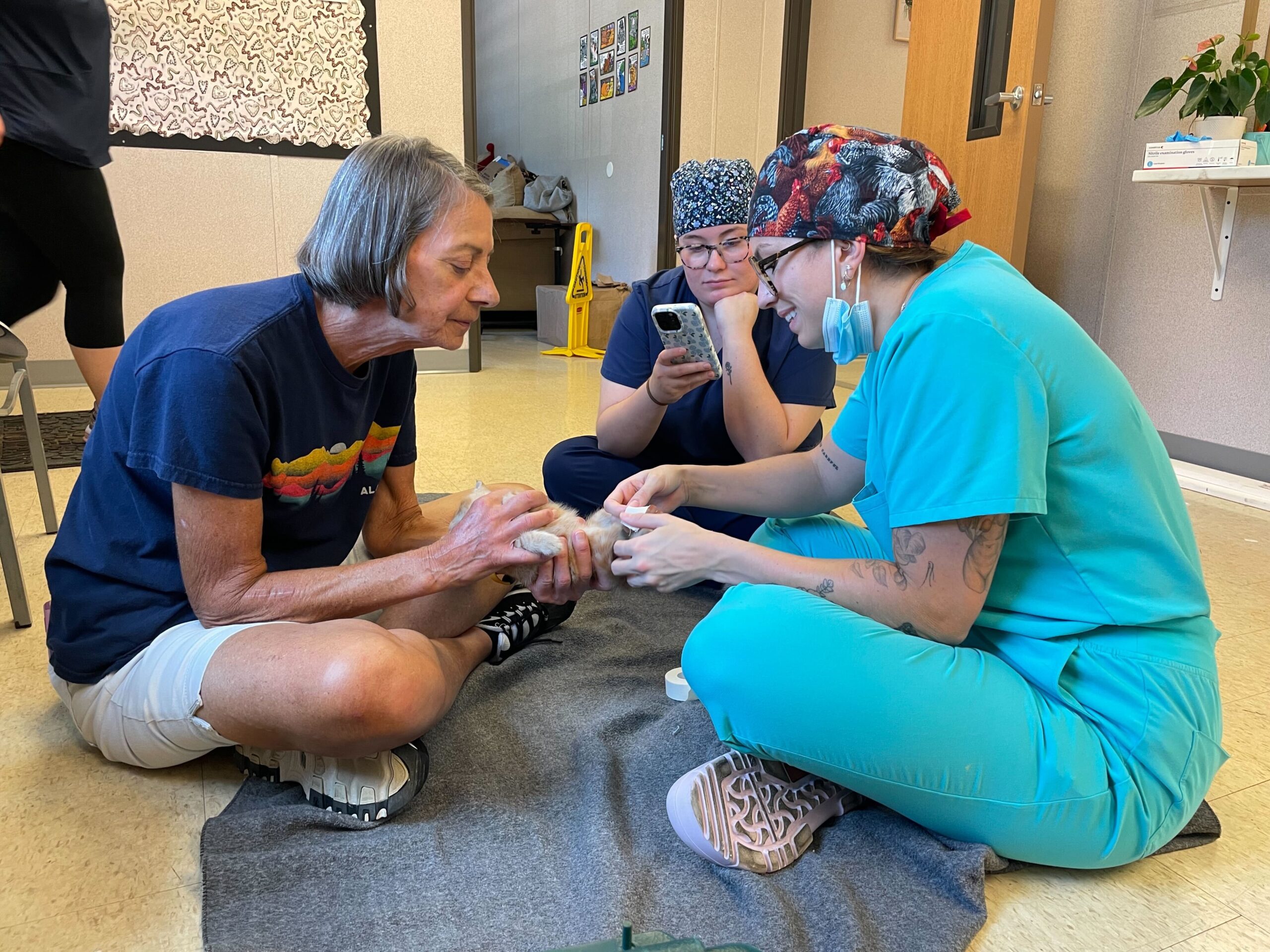 His foster parents gently taped his legs in place — a bit like splints — to encourage proper alignment and help him build muscle strength. Between sessions, Phelps did what he does best: purring, playing, and soaking up every ounce of love he could get.